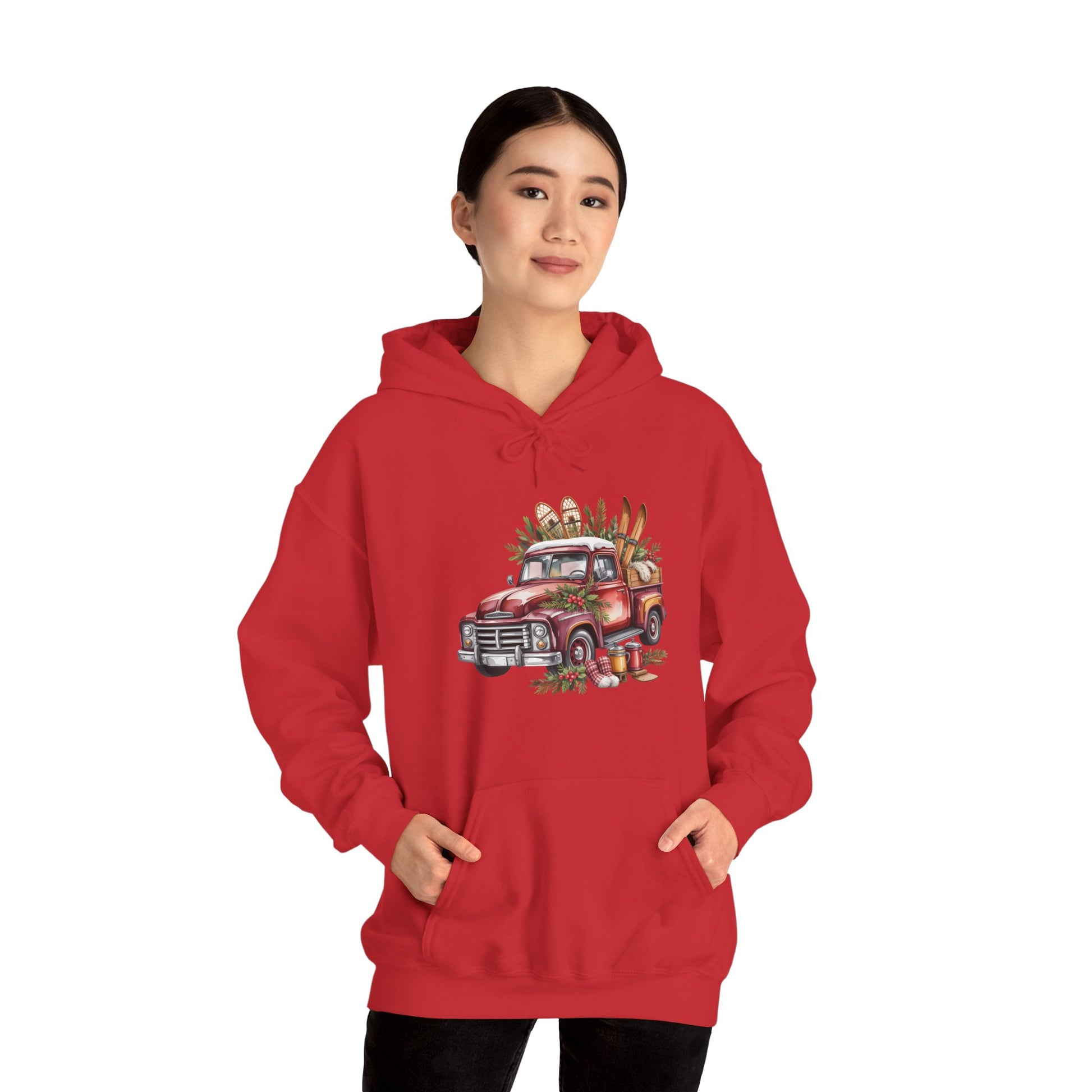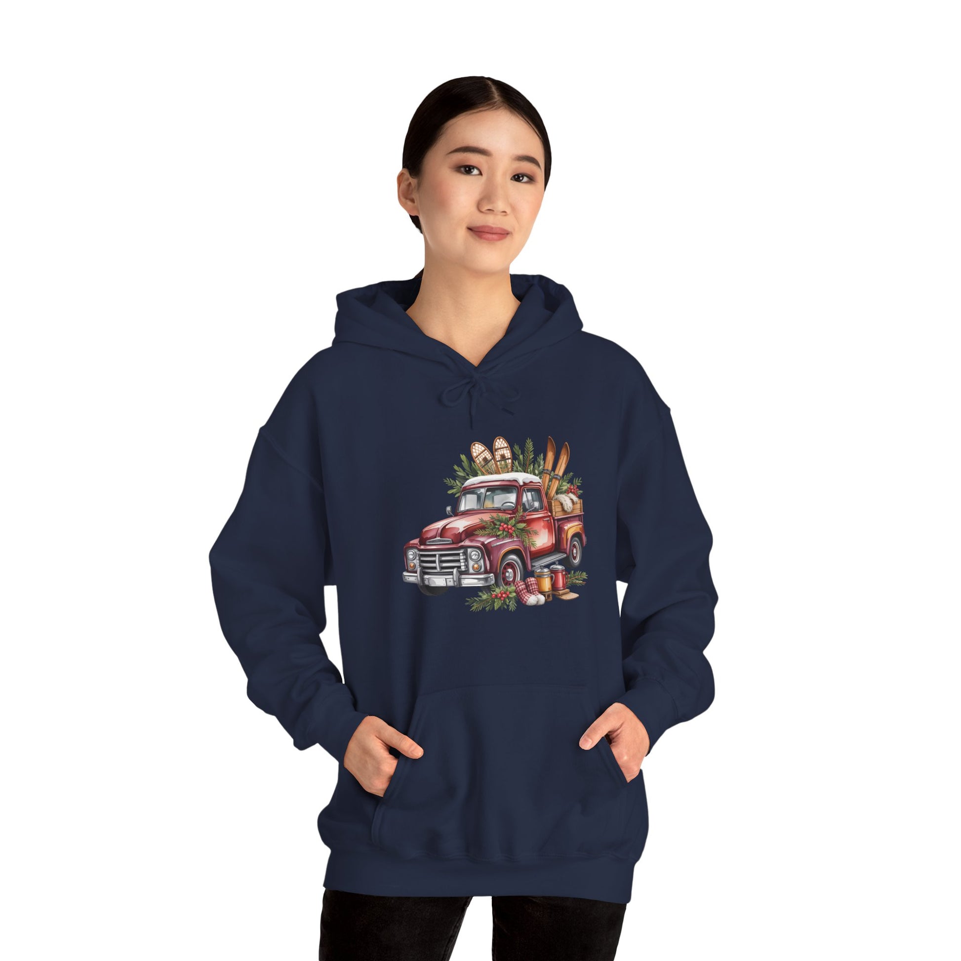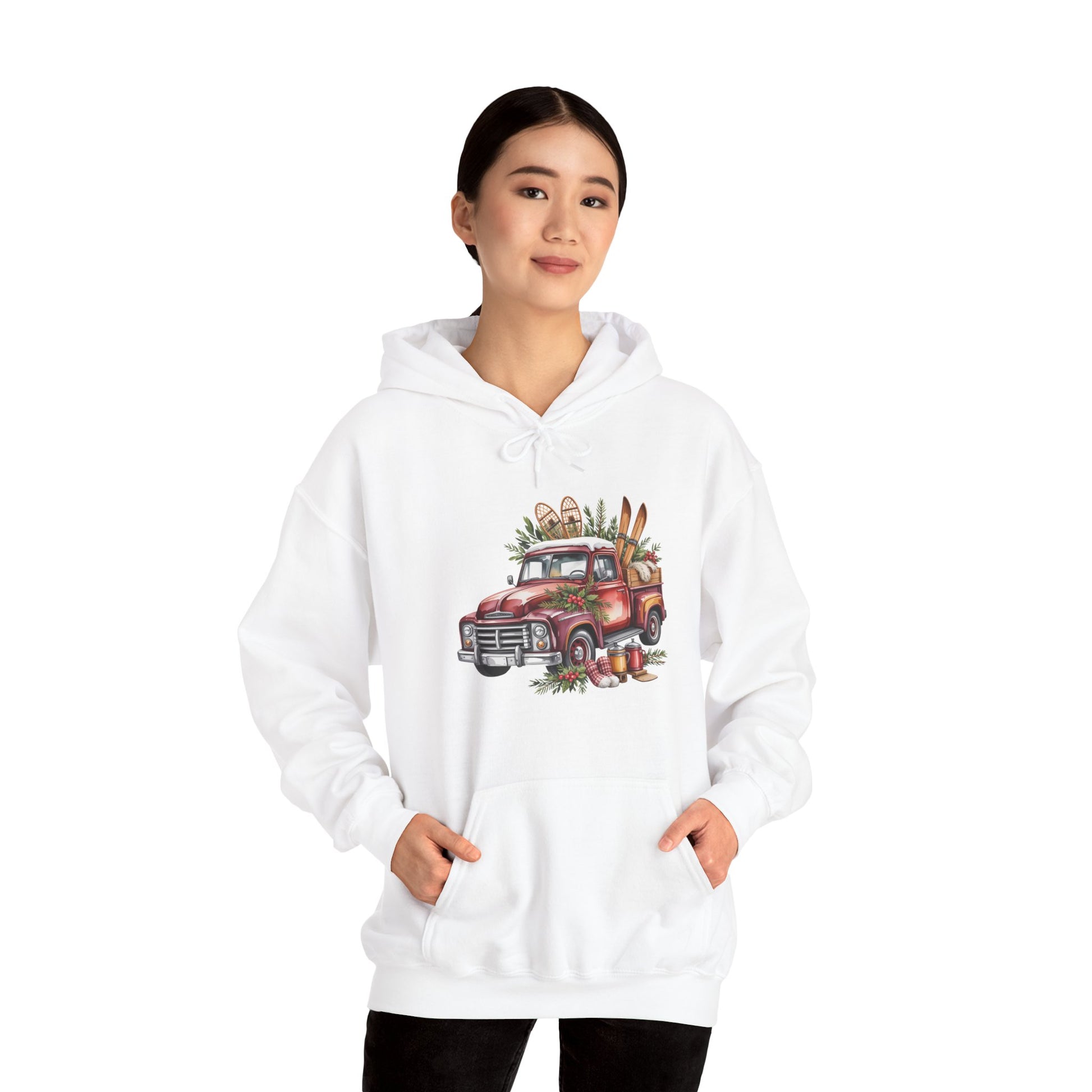 Cozy up this winter with our vintage red Christmas truck hoodie! Featuring a charming design of a classic pickup loaded with skis, snowshoes, and festive greenery, it’s the perfect blend of rustic charm and holiday cheer. Made from ultra-soft, warm fabric, this hoodie will keep you snug on snowy days or fireside nights. Celebrate the season in comfort and timeless style!